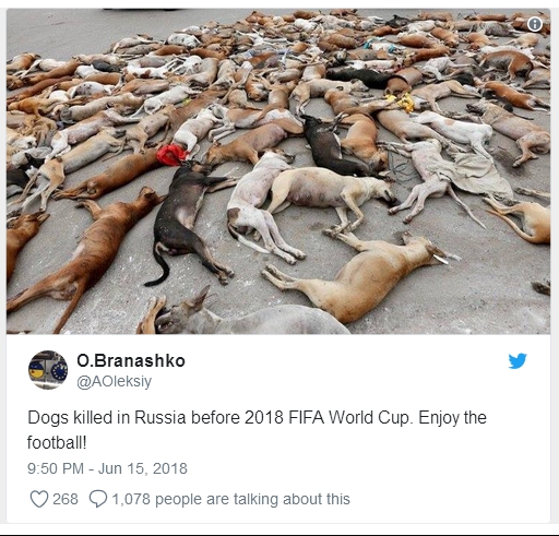Обрезанную версию фото использовало в качестве иллюстрации материала об убийстве собак в России даже агентство France-Presse. Однако на самом деле снимок сделал фотограф Reuters в 2016 году в пакистанском городе Карачи.