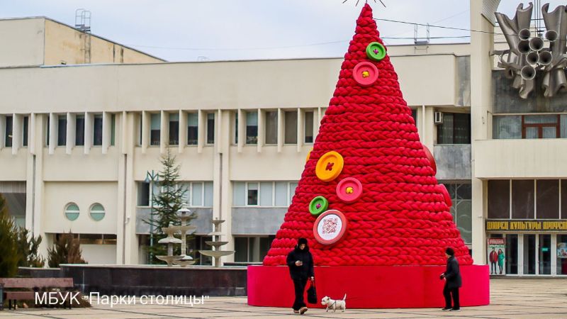 Напомним, ещё одна необычная лесная красавица «поселилась» в крымской столице. Семиметровую текстильную ярко-красную ёлку с игрушками в виде пуговиц установили около Дворца культуры профсоюзов (ДКП). Это подарок городу от местных декораторов.