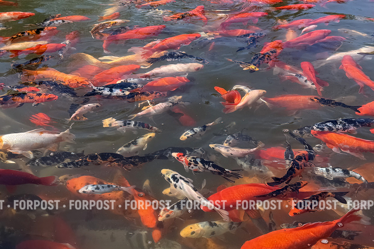 Первым посетителей встречает бассейн с карпами-кои: рыбы всегда жаждут получить лакомство. Кормушка здесь же: специальный автомат принимает и безналичную оплату. Как известно, эти рыбы приносят удачу, так что не пренебрегайте знакомством. Да и вообще на них, кажется, можно смотреть часами.
