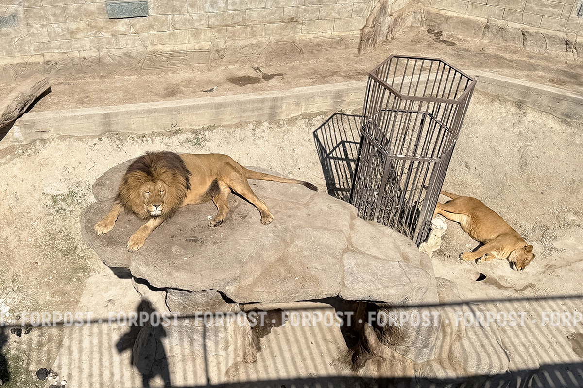 Есть в зооуголке и своя царская семья: лев и несколько львиц. Хищники ведут активный образ жизни ночью, поэтому посетители обычно видят их отдыхающими.