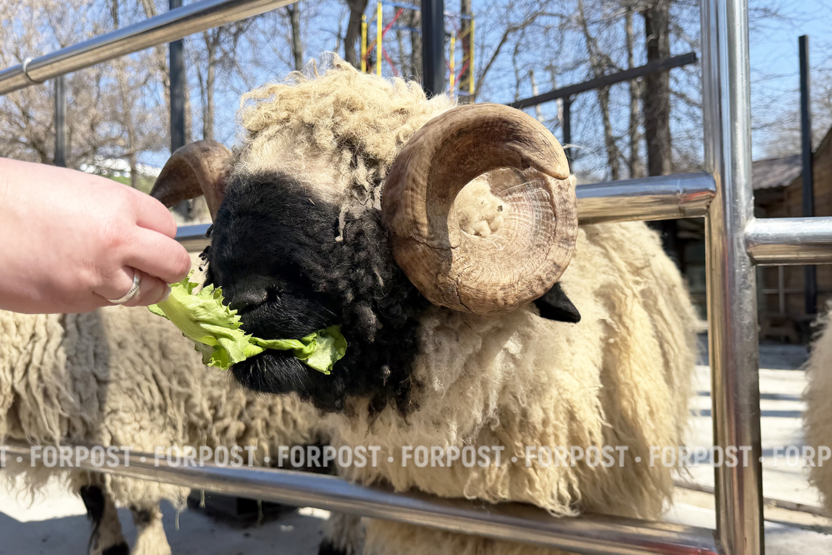 В зоопарке содержится много видов овец и коз. Некоторые из них — обладатели интересной внешности: закрученных рогов и густой шерсти, сквозь которую не просматриваются глаза. А вот найти рот в этом пушистом вихре поможет лист салата.