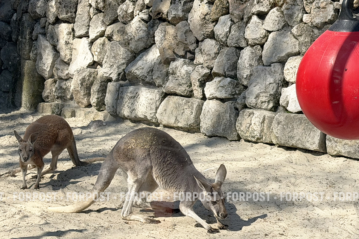 Кенгуру всегда подвижны и, как известно, любят боксировать, поэтому у них в клетке подвесили грушу. Правда, свою спортивную форму они готовы демонстрировать не сразу: представления дождутся лишь терпеливые и наблюдательные.