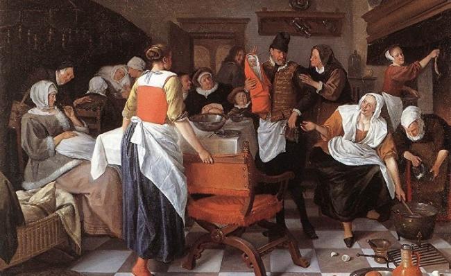 Он подозревал, например, что доля внебрачных детей больше среди аристократов в XVII веке, ведь тогда между мужем и женой часто была большая разница в возрасте. Внебрачное отцовство изображено на картине Яна Стена «Празднование крестин» 1664 года: зажиточный голландец держит новорожденного ребенка, а стоящий за ним мужчина показывает знак «наставленных рогов», означающий, что у ребенка на самом деле другой отец.