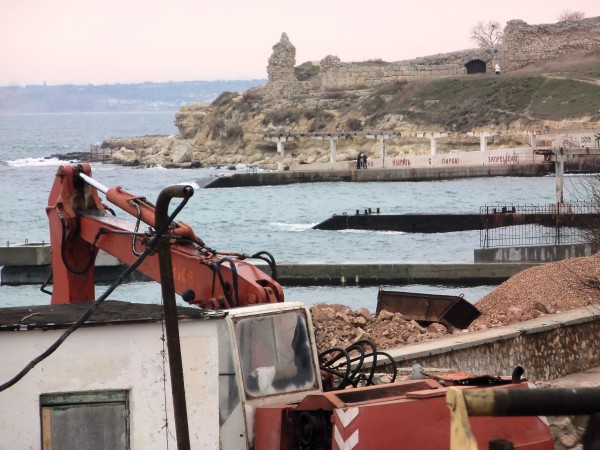 На территории бывшего санатория «Строитель», несмотря на субботний и праздничный день, возобновились ни с кем не согласованные работы. Речь идет о комплексной охранной зоне Херсонеса и землях Водного фонда.