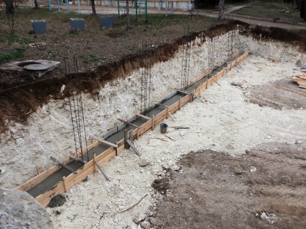 Снимок котлована на месте бывшей спортивной площадки 23 февраля. В опалубке - свежий бетон. Сравните глубину котлована со снимком, сделанным 14 февраля