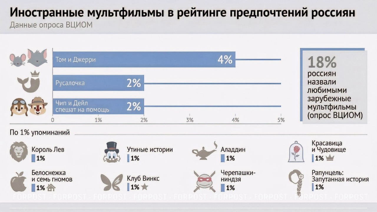Зарубежная анимация заняла своё место в культурном пространстве: американские мультфильмы назвали любимыми 18% опрошенных.