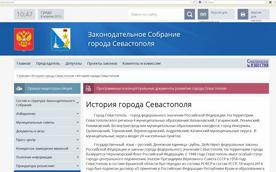 На интернет-портале Законодательного Собрания появился новый раздел «История города Севастополя». Там опубликована ценная информация о почетных гражданах города, о его героях, предприятиях, официальных символах.