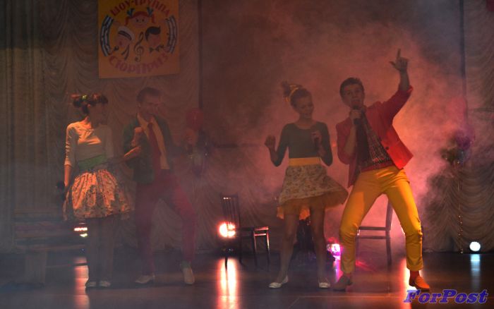 На протяжении всего концерта кружковцы «сюрприза» вовлекали зрителей в шоу-игру. Сцена переливалась яркими красками, на экране презентовали новый фильм, снятый к юбилейной дате. Яркие зрелищные постановки, шикарное оформление сцены, техническая оснащенность концерта Образцовой шоу-группы «Сюрприз» говорит о соответствии коллектива сегодняшнему дню. Для дальнейшего развития детей и педагогов спонсоры концерта, группа друзей и единомышленников из разных городов Украины – Украина 2.0 подарила ноутбук. Теперь появилась возможность собрать репертуар за все 20 лет и пользоваться им в кабинете коллектива. Еще один спонсор концерта полиграфическая фирма «Деколь и Сувениры» изготовила футболки, пакеты с эмблемой Образцовой шоу-группы «Сюрприз».