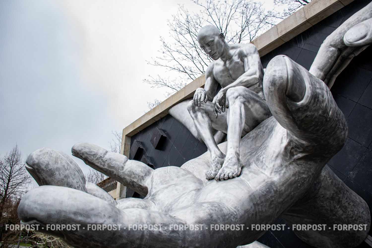 Фигура человека — тонкая и уязвимая, но стойкая, — символизирует каждого человека, а обнимающие её руки образуют защитное сердце, которое выражает единство, любовь и поддержку сообщества, сказано на аншлаге около композиции: