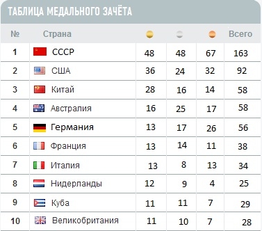 "Сборная СССР" за полтора десятка лет, которые она выступает на Олимпиадах в виде 15-ти команд, ни разу не уступала по общему количеству медалей.