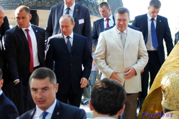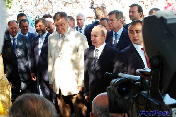 После чина освящения главного колокола Херсчонеса президенты Владимир Путин и Виктор Янукович посетили востановленный кафедральный Свято-Владимирский собор в Херсонесе.