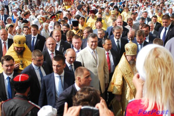 На мероприятие прибыли президент России Владимир Путин и президент Украины Виктор Янукович, находившиеся в это время в Севастополь на праздновании «Дня Флота», всвязи с чем для допуска граждан на территорию Свято-Владимирского собора был организован проход через металлодетекторы.