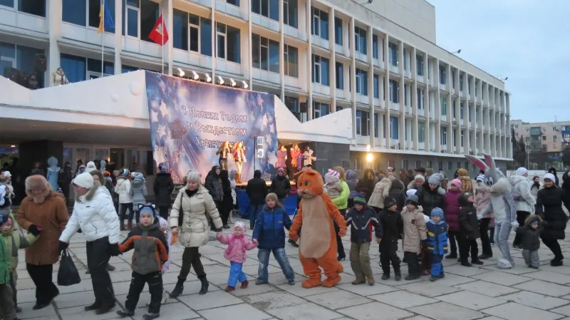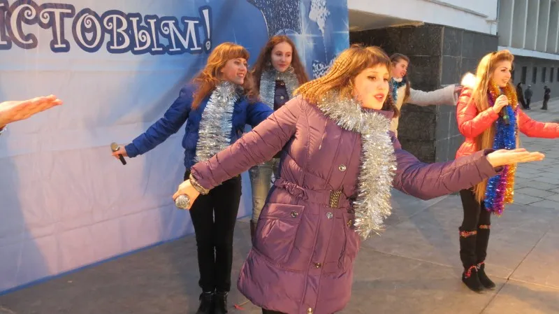 В программе: театрализованное представление с участием сказочных персонажей, танцевально-развлекательная программа «Новогодняя феерия», большая концертная программа, в которой приняли участие народный ансамбль «Играй, гармонь», народный хор ветеранов войны и труда «Лейся, песня», народный ансамбль «Червона калина», вокальный ансамбль «Весело живем», народный фольклорный ансамбль «Чаривницы».