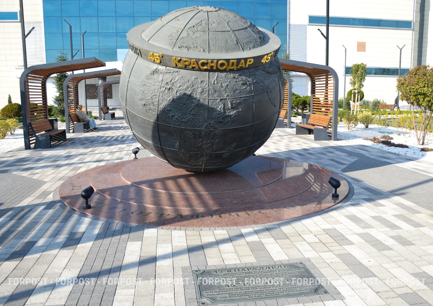 А скульптуру «45-я параллель» — трёхметрового земного шара — посвятили 175-летию Русского географического общества. Её передали «в дар жителям города Краснодара» и открыли в 2020 году.