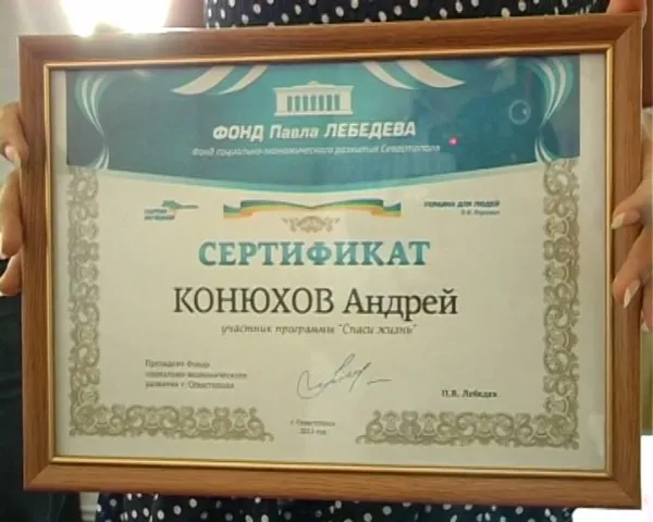 - переданы денежные средства (15000 гривен) 21-летнему севастопольцу Илье Зубовичу для очередного курса лечения лимфогранулематоза;