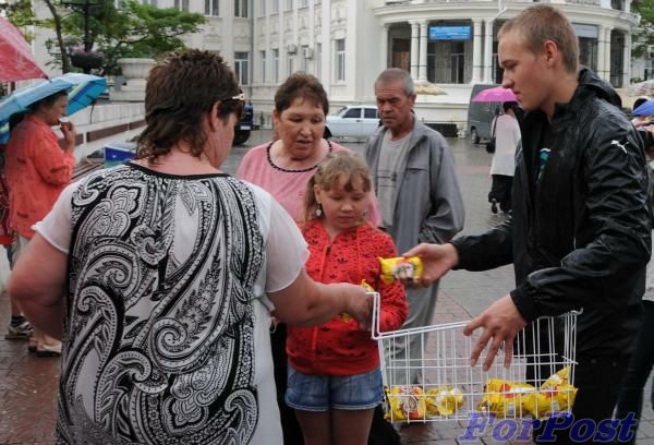 Для детей – участников праздничной церемонии – было припасено мороженое, и хотя и дождь внес некоторые коррективы в планы организаторов, холодное лакомство раздавали и детям, взрослым. Само открытие не затянулось – «Доброта и Благодарность – универсальный закон Человечества» - считает Григорий Потоцкий и с ним трудно не согласится. Несколько слов автора скульптурной композиции – в Севастополе стало на одну достопримечательность больше.