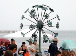 По мнению Григория Потоцкого, если приложить ладонь к одной из ладоней памятника Доброты – мир станет немного лучшеЭт - да! Но таким образом приложивщий руку к "ладони" "одуванчика", закрывает ему ("одуванчику") тот самый "глаз" на "ладони"...