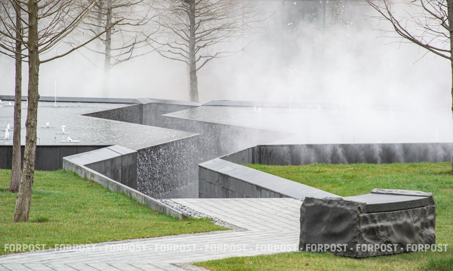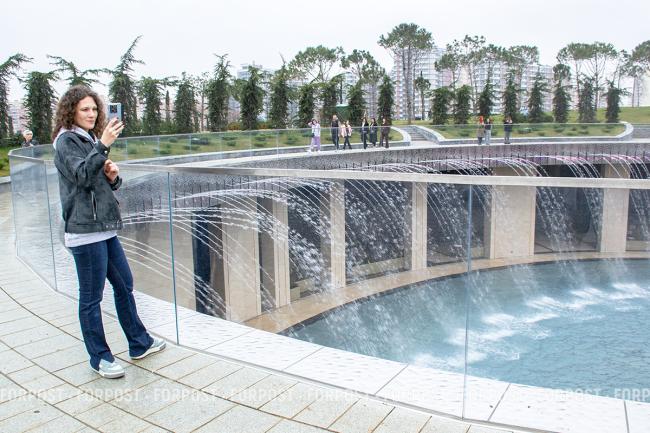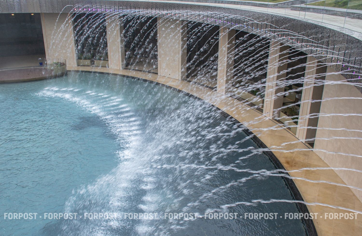 «Отражение облаков», расположенное сразу за «Красным каньоном» в северной части парка, снизу не выглядит фонтаном. Кажется, что перед тобой просто полукруглая часть какого-то здания.