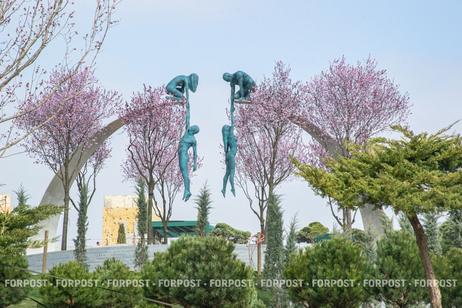 Рядом с этим необычным садом — интригующая композиция: арка, на которой мужчина и женщина держат за руки висящих других мужчину и женщину. О чём она — пока остаётся только строить версии.