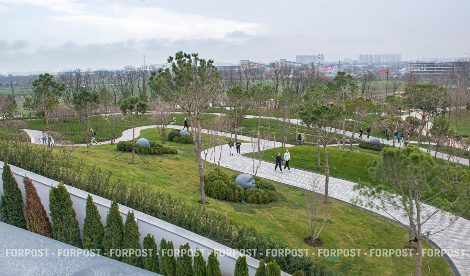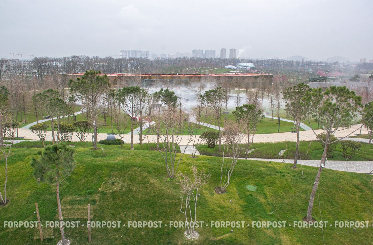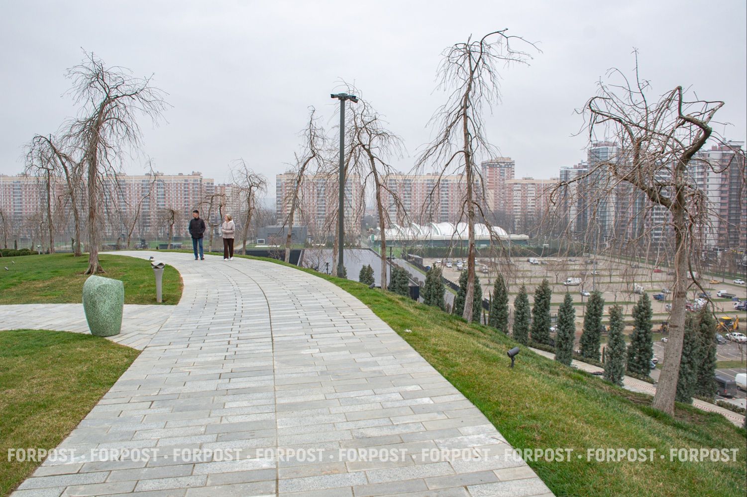 Здесь же смотровая площадка — с неё видны парк как на ладони и далёкие городские высотки.