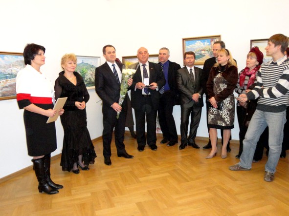 Поздравляли художницу не только друзья, коллеги из Балаклавы и Севастополя, но и ведущие искусствоведы из Киева и Москвы. в их числе директор РЭПа (на фото посередине, забыл ФИО)