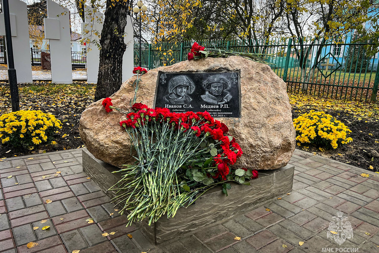 В Курской области появился мемориал в честь севастопольских сотрудников МЧС Решата Медиева и Сергея Иванова, погибших во время выполнения задания. Об этом сообщает пресс-служба Главного управления МЧС России по городу Севастополю.