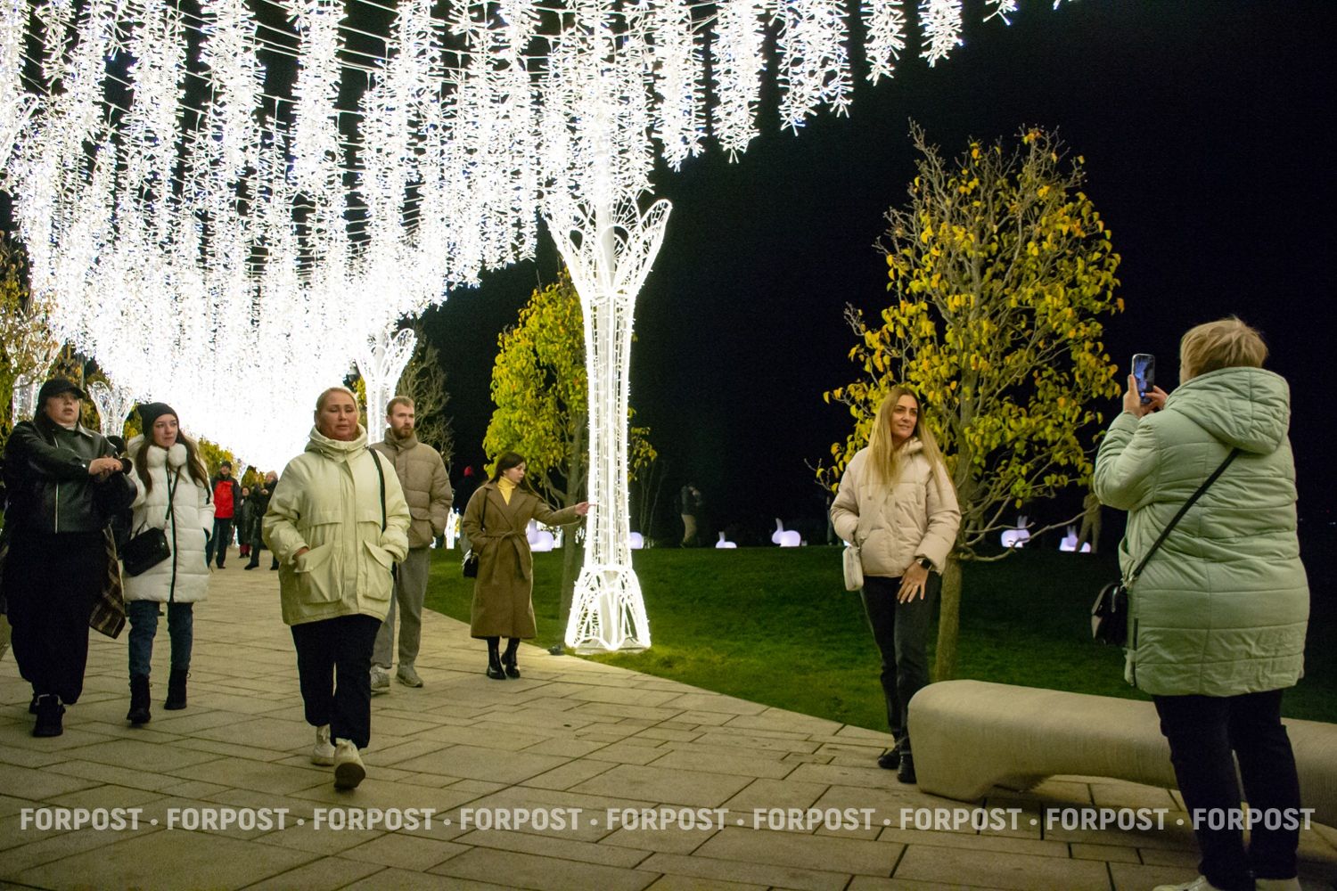 А возле этой галереи «поселились» светящиеся белые кролики, и многие гости не могут удержаться от селфи с ними прямо на газоне.