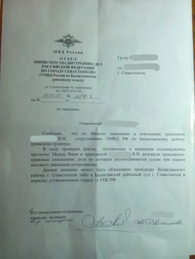 Из полиции на жалобы приходит ответ — нет состава преступления.