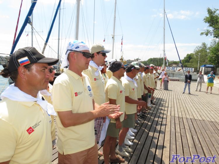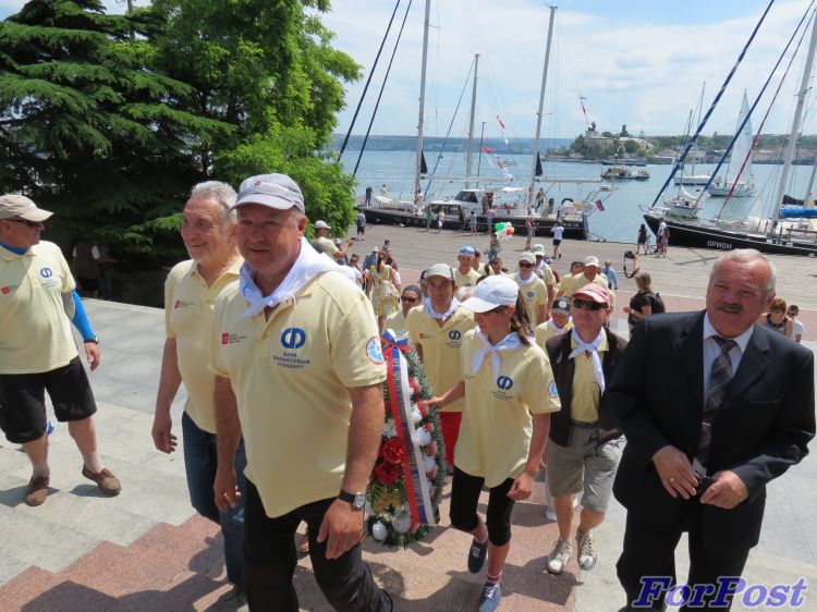 Первую гонку предварила торжественная церемония на Графской пристани, куда прибыли яхты и где выстроились яхтсмены. Они поднялись на площадь Нахимова и возложили венок к Монументу героическим защитникам Севастополя 1941-42 гг., отдали дань памяти тем, кто стойко оборонял наш город во время войны. После возложения венка с участием оркестра ЧВВМУ, церемония продолжилась на Графской пристани. Звучит рапорт президента Федерации парусного спорта Севастополя Валерия Зубкова врио губернатора Евгению Дубовику о готовности к проведению соревнований.