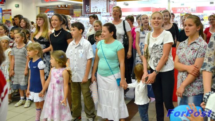Около 100-150 человек вместе с детьми из воскресных школ города, собравшись в центре торгового комплекса, запели под неожиданно включившуюся фонограмму песню на стихи святителя Николая Сербского. Действие началось сначала за столиками кафе-пицерии, затем распространилось на весь супермаркет. Торговля на несколько минут буквально замерла, люди стекались со всех сторон, чтобы взглянуть на необычное действо. Десятки мобильных телефонов, фотоаппаратов и видеокамер старались запечатлеть то, что разворачивалось в центре супермаркета.