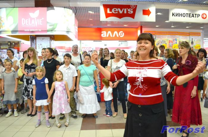 12 мая прихожане из восьми храмов Севастопольского благочиния Пасхальной песней остановили на несколько минут суету самого крупного супермаркета города Севастополя - торгового центра “Муссон”.