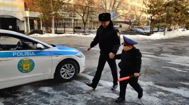 В Казахстане ребенок пришел на новогодний утренник в костюме полицейского, после этого его пригласили в департамент полиции Алматы, сообщает местное издание Tengrinews.kz.