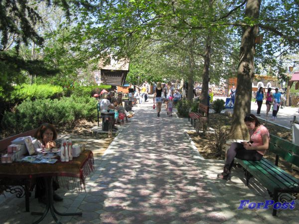 Вот и в праздник Первомая Николай Помогалов активно трудился на благо детского городка и его посетителей. А они были не только из Севастополя, но даже из Одессы. С руководителем одной из групп я разговорился и сказал о рейдерском захвате одесситами севастопольского дельфинария. Оказалось, они в курсе событий и, как одесситы, осудили этот захват. Впрочем, это тема отдельного разговора. В день Первомая посетители городка смогли весело провести время, побывав в нескольких музеях «Лукоморья».