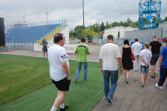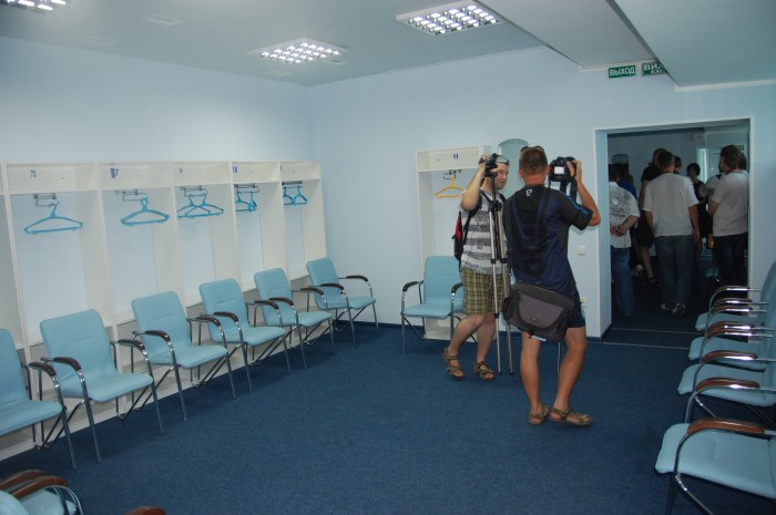Сначала для журналистов была проведена экскурсия по обновленному стадиону СКС, во время которой было рассказано об истории стадиона «Севморзавода», этапах его реконструкции, показаны раздевалки, душевые, комнаты для арбитров. Во время этой экскурсии нашему корреспонденту стало известно, например, что планируется расширение стадиона на 1500 посадочных мест. Сделано это будет за счет закруглений, соединяющих восточную трибуну с южной и северной, а также незначительного удлинения северной и южной трибун в сторону западной трибуны.