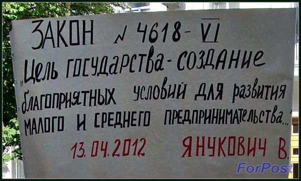 С таким плакатом на пикет пришла поддержать частных предпринимателей центра города одинокая мать двоих малолетних детей Черникова, аналогичным образом изгнанная с торгового места, находящегося в Парке Победы: