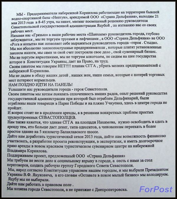 У нас по тексту шла речь, про лотки и палатки, которые никоем образом не украшают наш город. И то, что на севастопольской земле должны работать сами севастопольци.