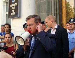 Кто-то спешит быстренько прошмыгнуть мимо пикетчиков, кто-то как Василий Пархоменко (КПУ)