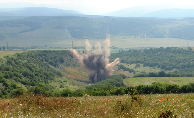 На специальном полигоне в с. Хмельницкое пиротехнический расчет Главного управления МЧС России по г. Севастополю, группа Центра по проведению спасательных операций особого риска «Лидер» МЧС России и саперы Черноморского Флота успешно обезвредили авиабомбу немецкого производства «SC-250» времен Великой Отечественной войны.