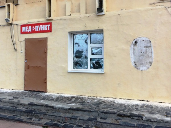 На замке медпункт. Телефон-автомат «унесли» вместе с куском штукатурки.