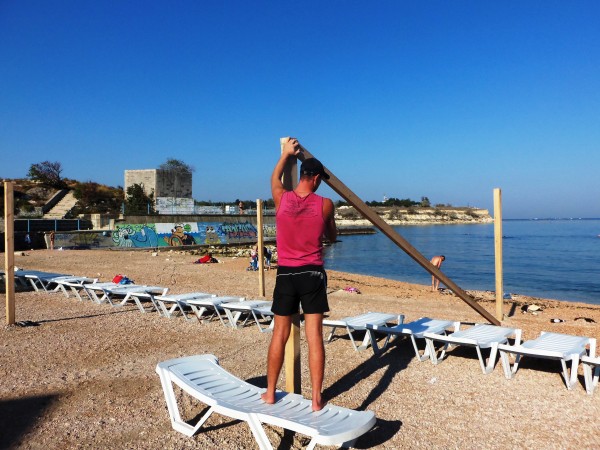 На «Солнечном» окончательно свёрнута вся пляжная инфраструктура: закрыт медпункт, опустела спасательная вышка и даже снят настенный телефон-автомат. Больше не работает прокат шезлонгов и заперт на замок душевой павильон. Последним на днях был разобран теневой навес, вернувший хотя бы на зиму всю галечную зону пляжа в полное распоряжение севастопольцев.