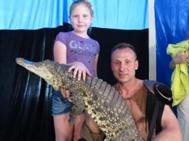 А разве можно остаться равнодушными к номерам с Гоги - живым нильским крокодилом?! Апогеем выступления является поцелуй дрессировщика с этим хищником, в зубастую пасть которого запросто может поместиться небольшое животное.