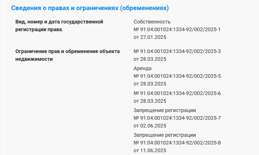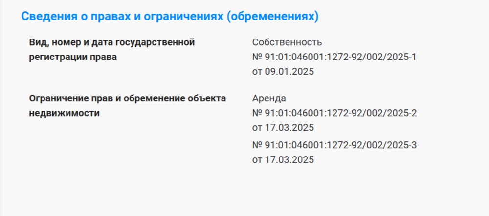 Однако, по данным Росреестра, земельный участок 91:01:046001:1272 до сих пор стоит на кадастровом учёте и находится в аренде у физического лица.