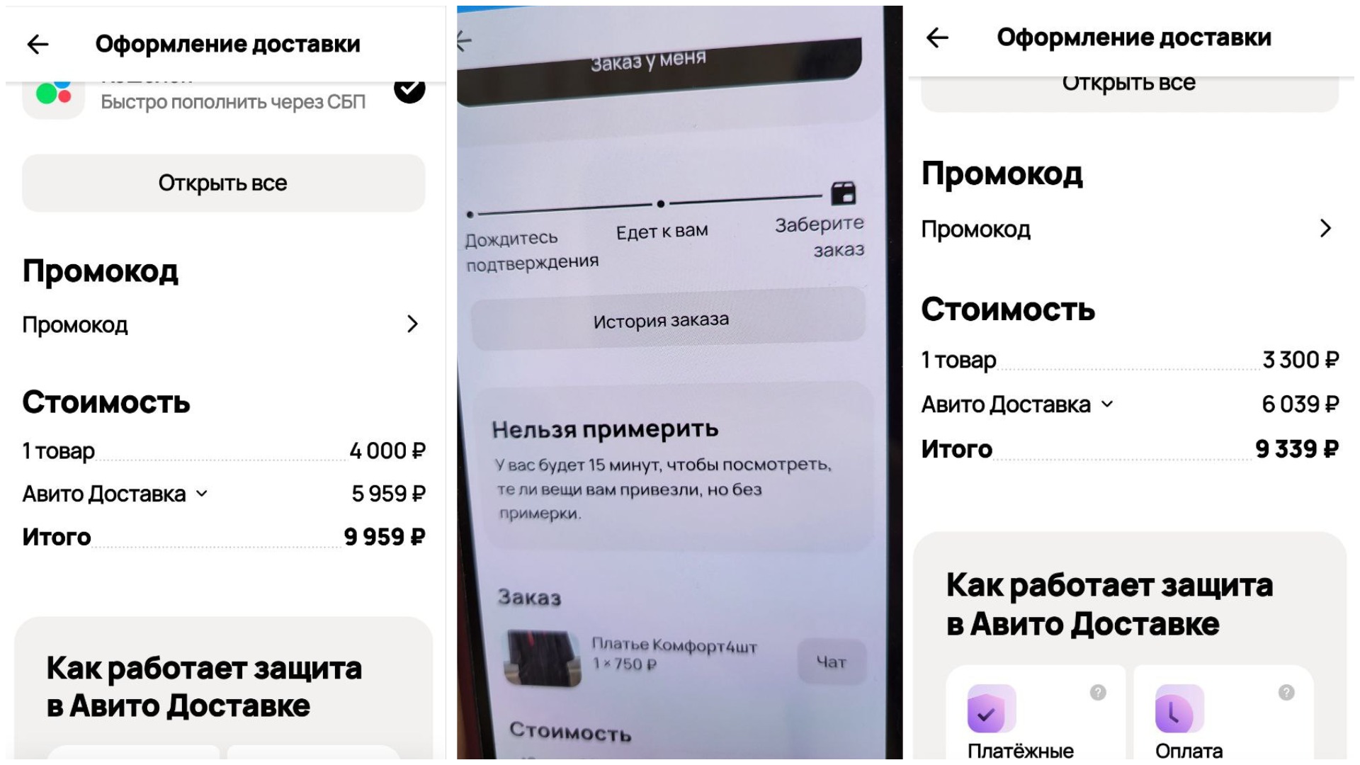 Для получения заказа покупательница выбрала пункт выдачи СДЭК, однако, когда женщина пришла в пункт выдачи заказов (ПВЗ), в примерке ей категорически отказали. Более того, сообщение платформы «Авито» о возможности примерки сменилось на уведомление: «у вас будет 15 минут, чтобы посмотреть, те ли вещи вам привезли, но без примерки».