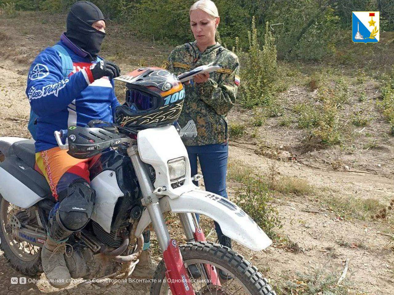 Мотоциклист, нарушивший запрет на въезд в севастопольские леса. Фото: Севприроднадзор.