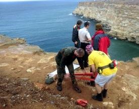 То Вася (Киев) молодец, медальку тебе за это ( в Vikimapia фотки тоже есть и сомневаюсь я что та "трактористка" спустилась без страховки, не все же не нормальные). Но я за нормальный туризм, без безбашенного экстрима, троп там нет и матросики из части в самоход покупаться в Затерянный мир не спускались, а они народ ушлый особенно "деды" прослужившие по 3-4 года, и если там было все просто, то тропку бы протоптали.
