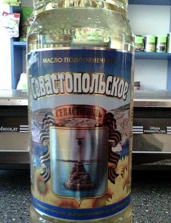 Да ну глупость это всё! С каких это пор растительное масло стало "сомнительным продуктом"? Или Вам сертификат качества не предъявили? У них, кстати, на "лейбле" сзади, знак сертификации в целом Таможенном союзе имеется! Ну а название "Севастопольское" придётся патентовать (за деньги и не малые!), или его могут ставить все, и без разрешения Медведева!