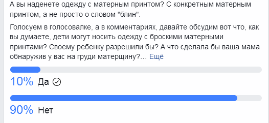 При обсуждении деталей скандала севастопольские пользователи соцсетей вдруг задумались - а приемлемо ли в принципе носить одежду с нецензурными принтами? Норма ли это для подростков и молодежи, позволительно ли это и взрослым? На одной из страниц спонтанно родился опрос - кто рискнул бы и разрешил своим детям носить такое. Его результаты говорят сами за себя: "продвинутых" респондентов оказалось около 10%, а остальные 90% сочли такую моду неприемлемой для себя. В голосовании участвовали 122 человека.