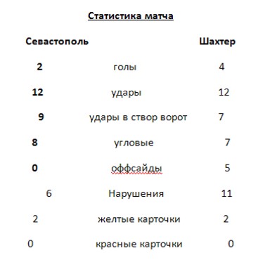 Отличный матч наши провели! Против чемпиона! Играли с "Шахтой" на встречных курсах,мастерства и опыта пока не хватает. Но очень полезный матч! Кстати,обратил внимание на статистику.По ударам 12-12.В створ 9-7 (Наши больше) плюс перекладина,ну и Пятов выручал. Проблемы в защите,конечно есть...Но не выставили "автобус",не закрылись. МОЛОДЦЫ! С оптимизмом ВПЕРЕД,СЕВАСТОПОЛЬ!!!