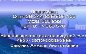 Назначение платежа: на лицевой счет 4627- 0812-0220-3555