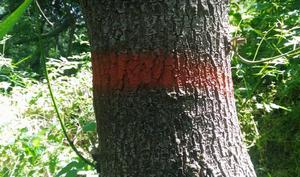 Недавно на деревьях в Ушаковой балке, как сухих, так и живых появились странные отметки красного и белого цвета. Похожие на те, которые ставят лесники перед тем, как срубить дерево.